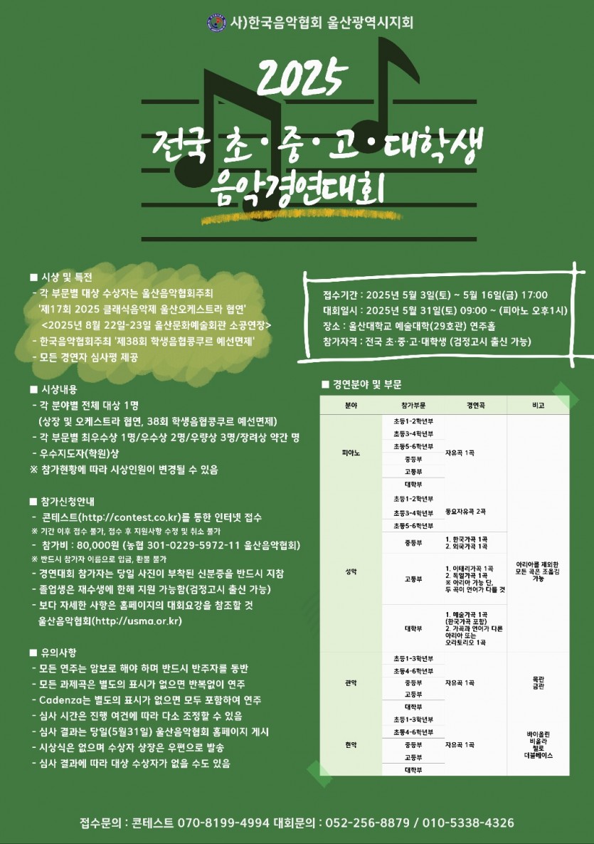 2025 울산음악협회 전국 초.중.고.대학생 음악경연대회