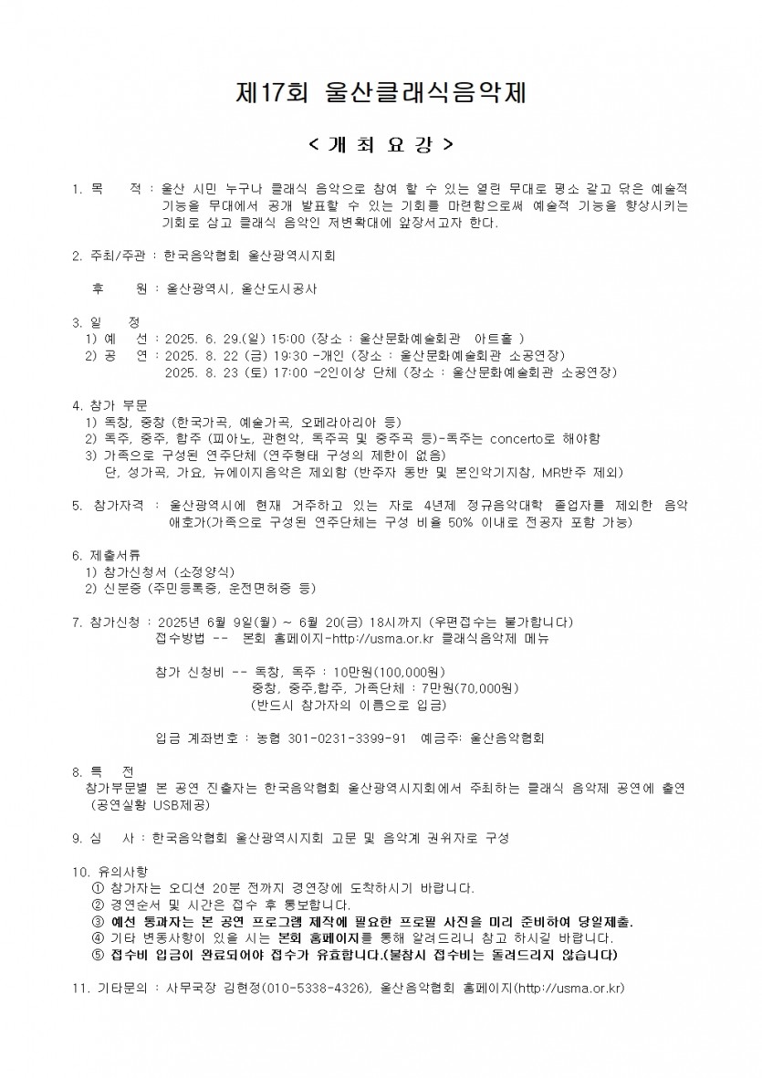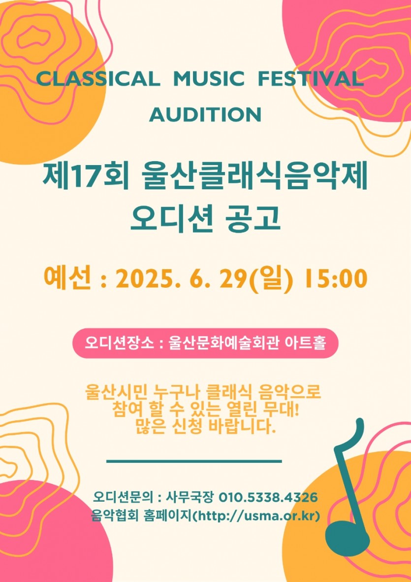 2025년 제 17회 클래식 음악제 오디션 개최안내
