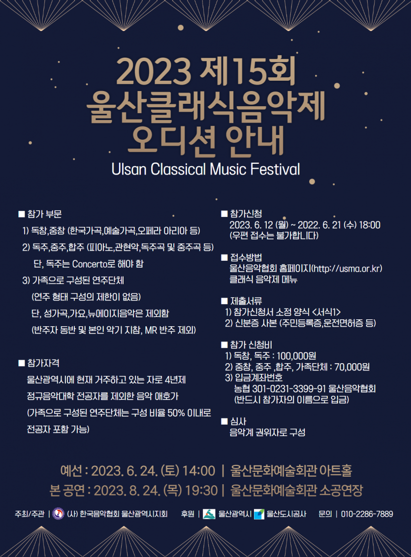 접수방법 : 울산음악협회 홈페이지 클래식음악제 메뉴